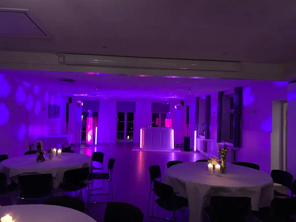 Vi sørger for, at opsætningen passer perfekt ind i jeres festlokale og bidrager til den romantiske atmosfære.
